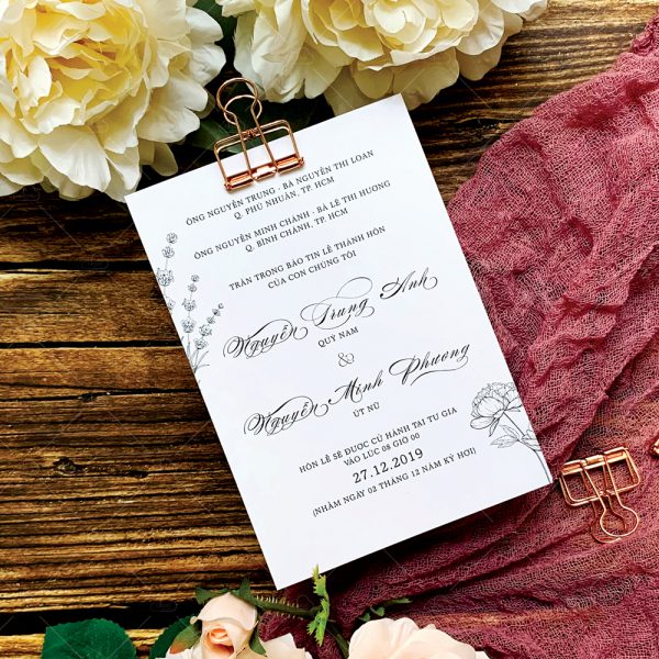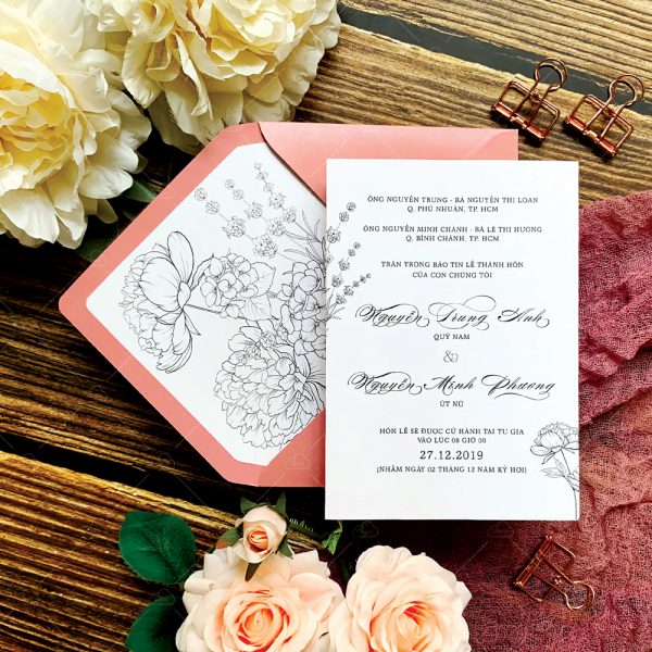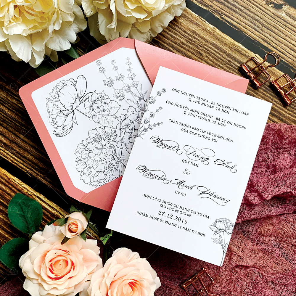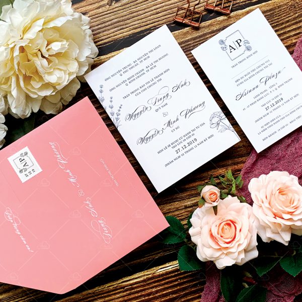 – Bao thư thiệp: 13 x 18 cm, quy cách in 2 mặt, chất liệu giấy mỹ thuật tiêu chuẩn.