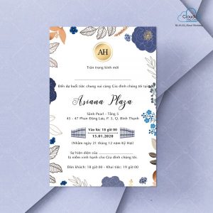 – Thiệp mời tiệc: 10 x 15 cm, quy cách in 1 mặt, chất liệu giấy mỹ thuật tiêu chuẩn.