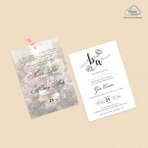 – Thiệp mời tiệc: 12 x 17 cm, quy cách in 1 mặt, chất liệu giấy mỹ thuật tiêu chuẩn.