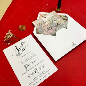 – Bao thư thiệp: 13 x 18 cm, quy cách in 2 mặt, chất liệu giấy mỹ thuật tiêu chuẩn.
