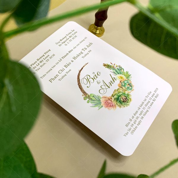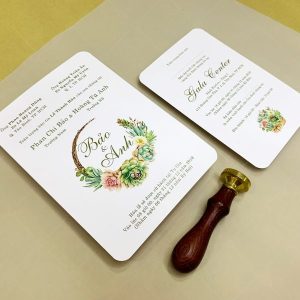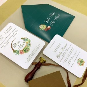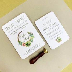 – Bao thư thiệp: 13 x 18 cm, quy cách in 2 mặt, chất liệu giấy mỹ thuật tiêu chuẩn.