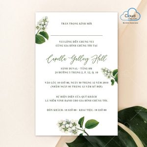 – Thiệp mời tiệc: 10 x 15 cm, quy cách in 2 mặt, chất liệu giấy mỹ thuật tiêu chuẩn.