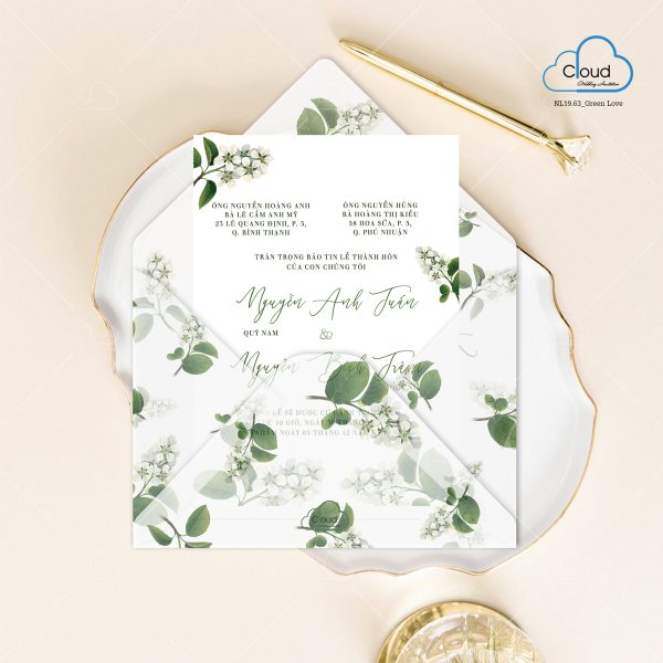 – Bao thư thiệp: 13 x 18 cm, quy cách in 1 mặt, chất liệu giấy can trong.