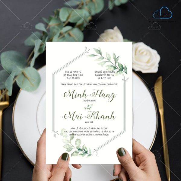 – Thiệp mời tiệc: 11 x 15 cm, quy cách in 2 mặt, chất liệu giấy mỹ thuật tiêu chuẩn.