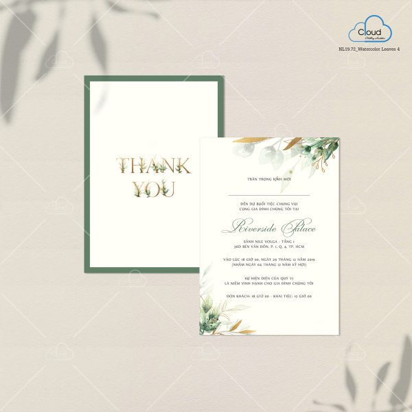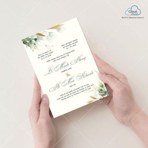 – Thiệp mời tiệc: 12 x 17 cm, quy cách in 2 mặt, chất liệu giấy mỹ thuật tiêu chuẩn.