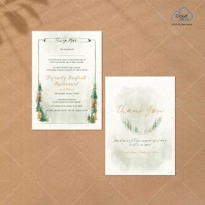– Thiệp mời tiệc: 12 x 17 cm, quy cách in 2 mặt, chất liệu giấy mỹ thuật tiêu chuẩn.