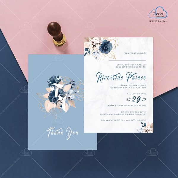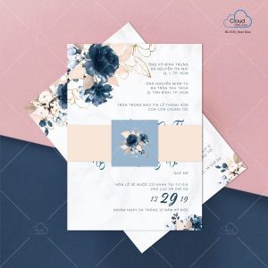 – Thiệp mời tiệc: 13 x 18 cm, quy cách in 2 mặt, chất liệu giấy mỹ thuật tiêu chuẩn.