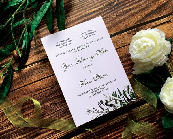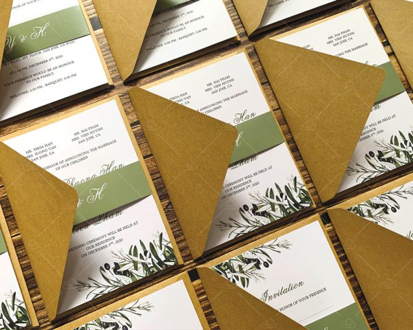 – Thiệp mời: 12 x 17 cm, quy cách in 2 mặt, chất liệu giấy mỹ thuật tiêu chuẩn.
