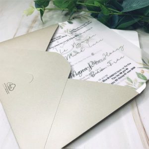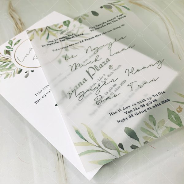 – Thiệp báo hỷ: 12 x 17 cm, quy cách in 1 mặt, chất liệu giấy can trong.