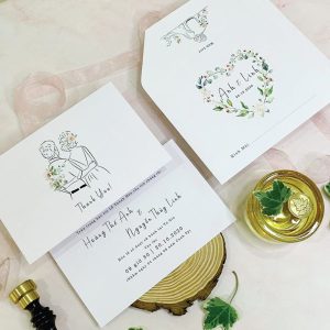– Bao thư thiệp: 12 x 18 cm, quy cách in 2 mặt, chất liệu giấy mỹ thuật tiêu chuẩn.