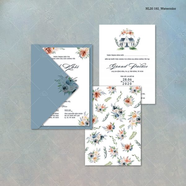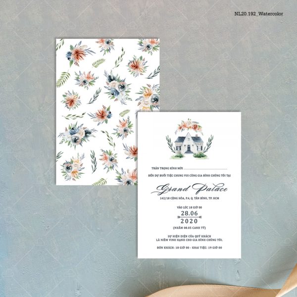– Thiệp mời tiệc: 12 x 17 cm, quy cách in 2 mặt, chất liệu giấy mỹ thuật tiêu chuẩn.