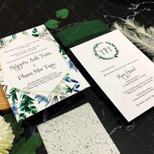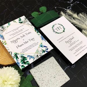 – Thiệp mời tiệc: 12 x 17 cm, quy cách in 2 mặt, chất liệu giấy mỹ thuật tiêu chuẩn.