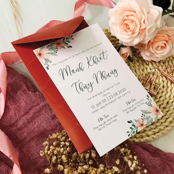 – Bao thư thiệp: 12 x 18 cm, quy cách in 2 mặt, chất liệu giấy mỹ thuật tiêu chuẩn.