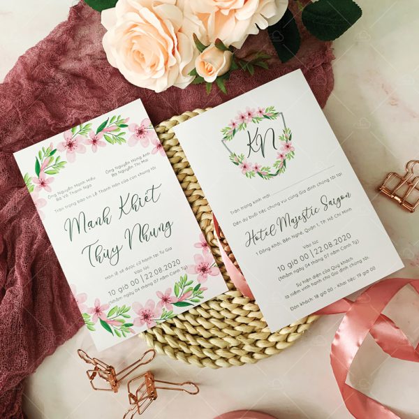 – Thiệp báo hỷ: 11 x 17 cm, quy cách in 2 mặt, chất liệu giấy mỹ thuật tiêu chuẩn.