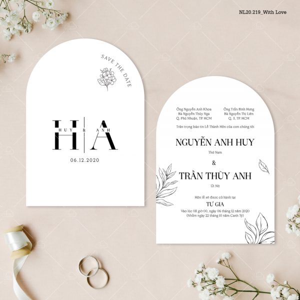 – Thiệp báo hỷ: 12 x 17 cm, quy cách in 2 mặt, bế bo tròn như hình, chất liệu giấy mỹ thuật tiêu chuẩn.