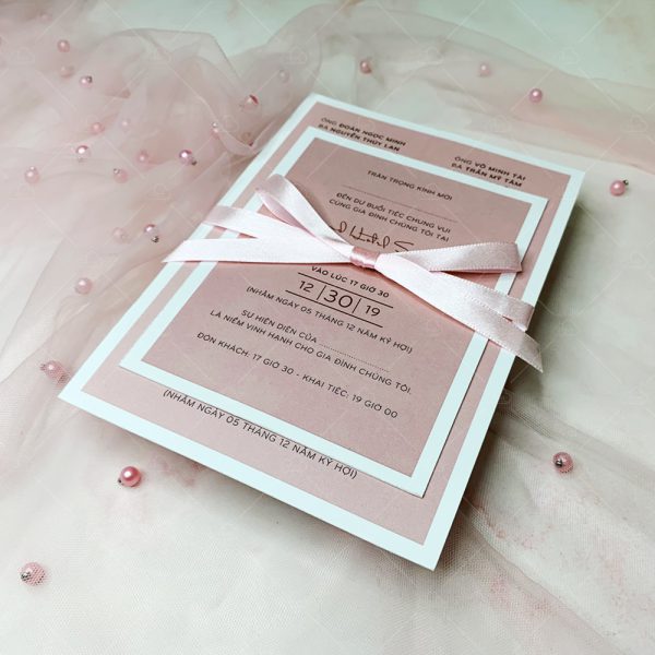 – Thiệp mời tiệc: 10 x 15 cm, quy cách in 1 mặt, chất liệu giấy mỹ thuật tiêu chuẩn.