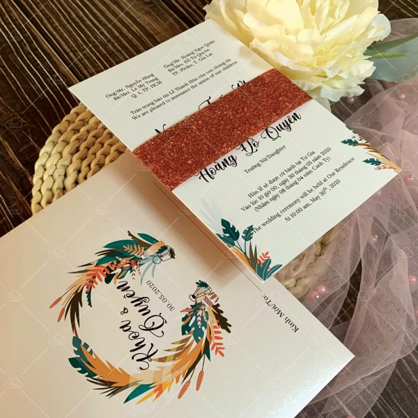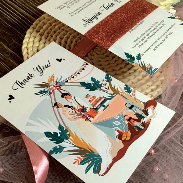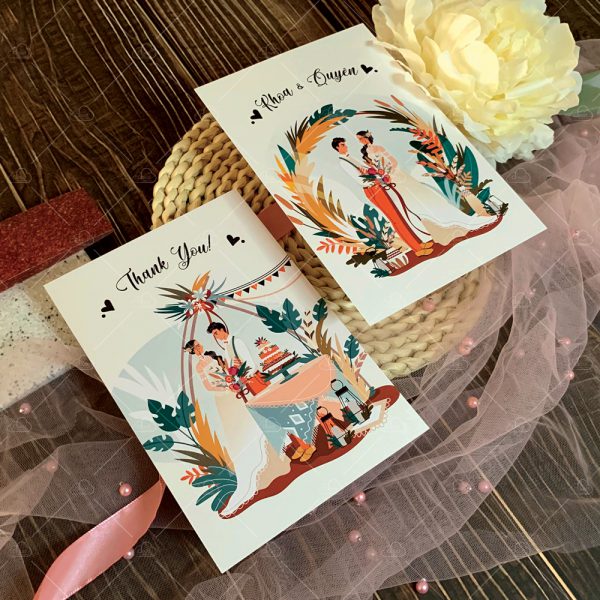 – Bao thư thiệp: 13 x 18 cm, quy cách in 2 mặt, chất liệu giấy mỹ thuật cao cấp.