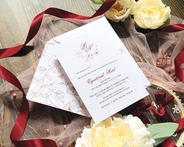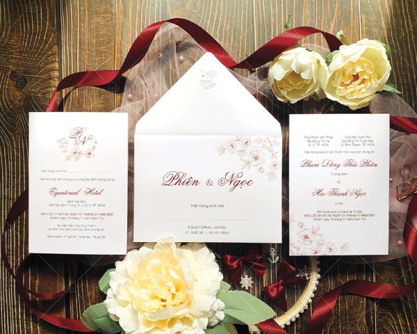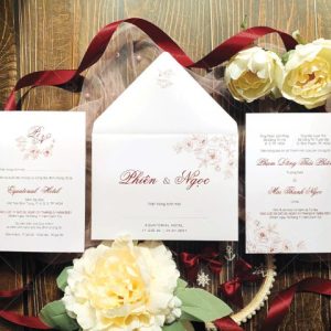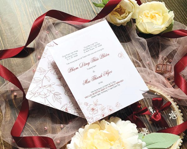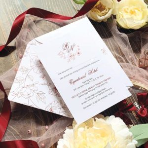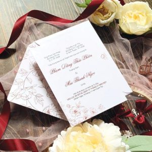 – Thiệp mời: 12 x 17 cm, quy cách in 2 mặt, chất liệu giấy mỹ thuật tiêu chuẩn.