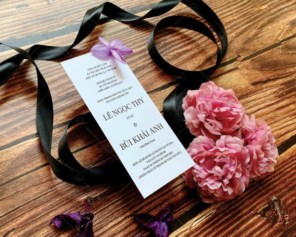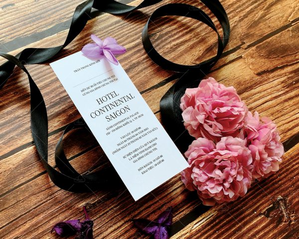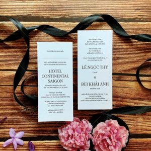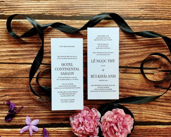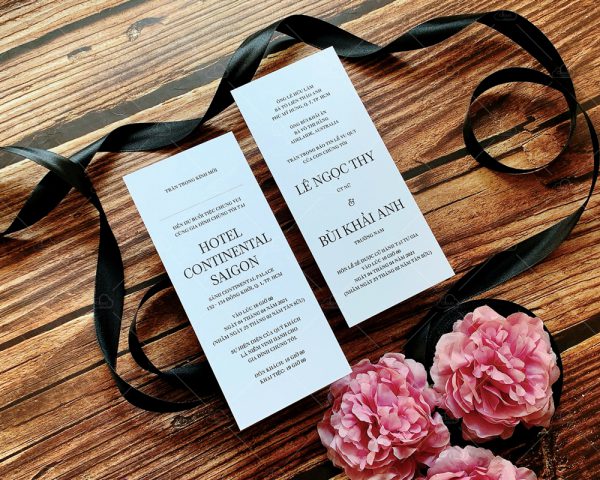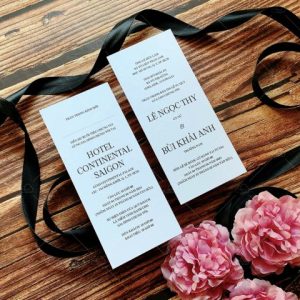– Thiệp mời: 7.5 x 17 cm, quy cách in 1 mặt, chất liệu giấy mỹ thuật tiêu chuẩn.