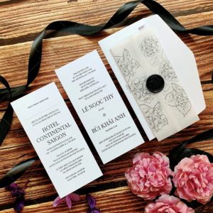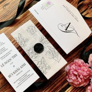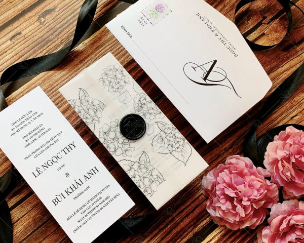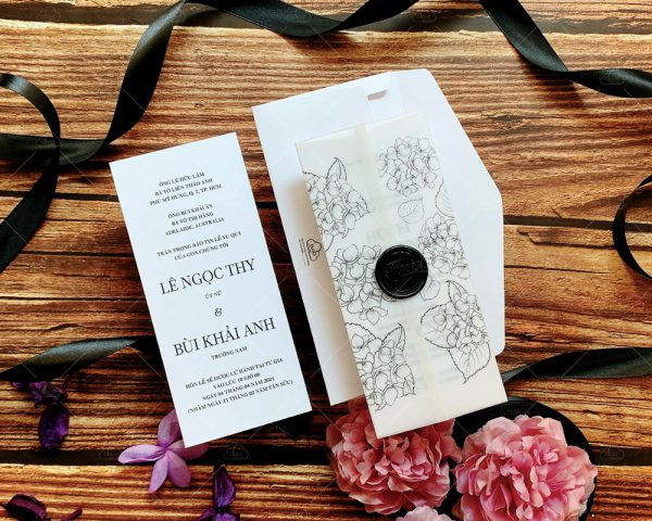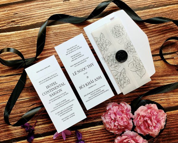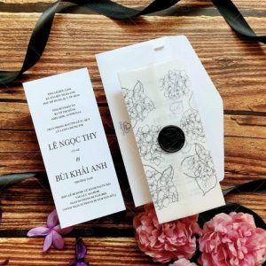 – Tờ bọc thiệp: 7.5 x 17 cm, quy cách in 1 mặt, chất liệu giấy can trong.