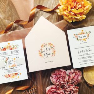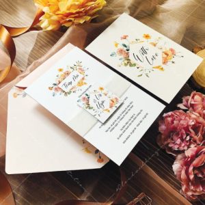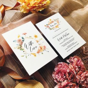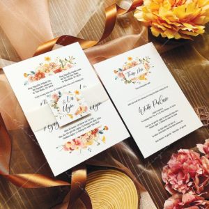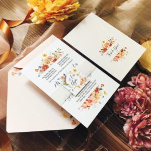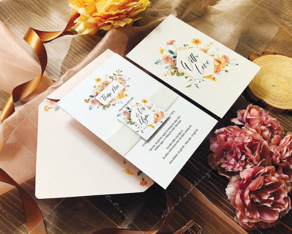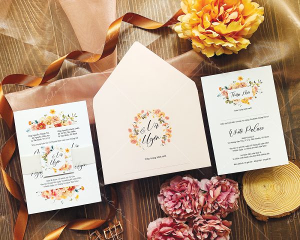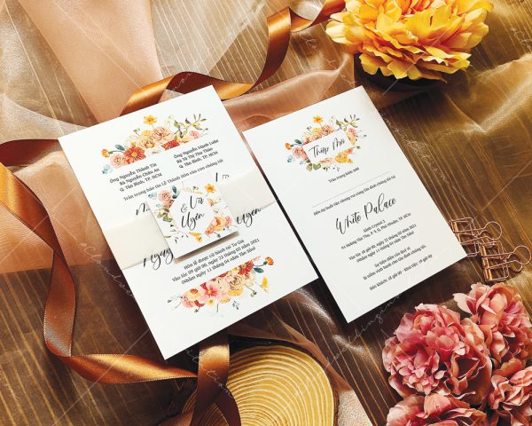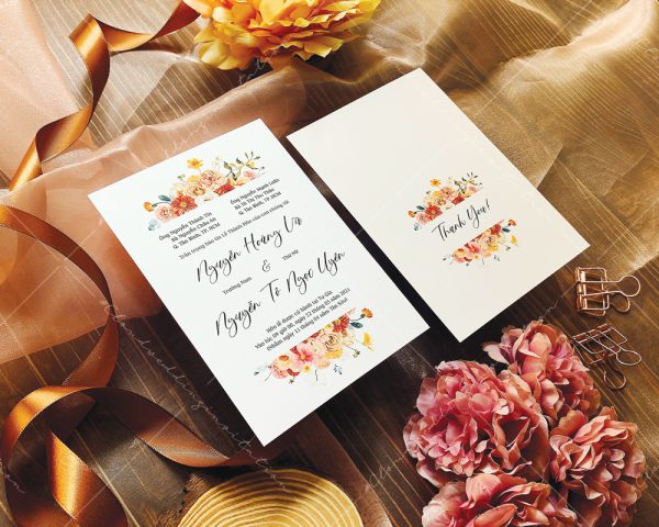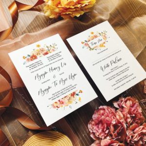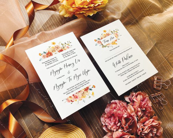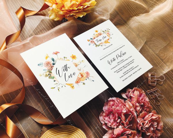 – Tờ thiệp mời: 12 x 17 cm, quy cách in 2 mặt, chất liệu giấy mỹ thuật tiêu chuẩn.