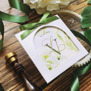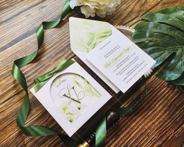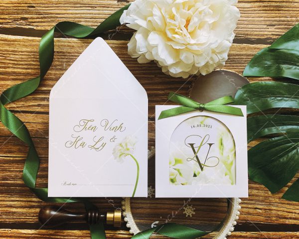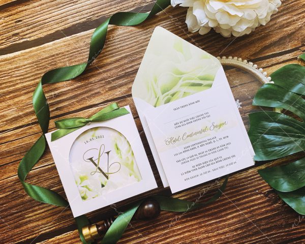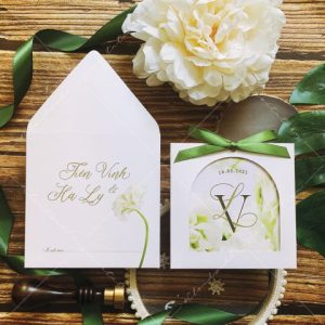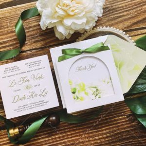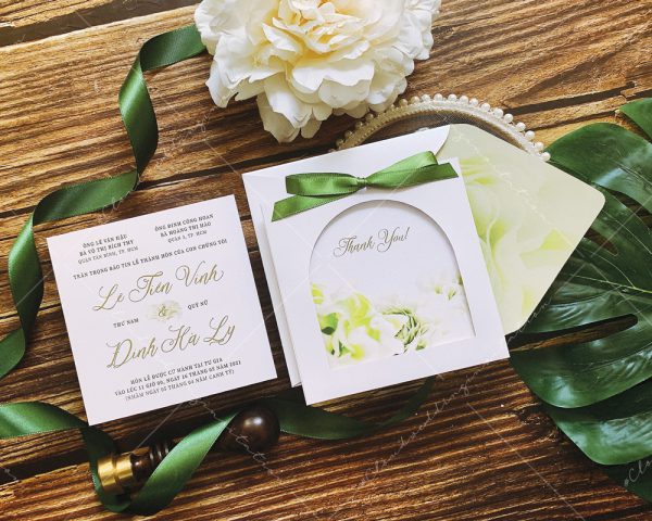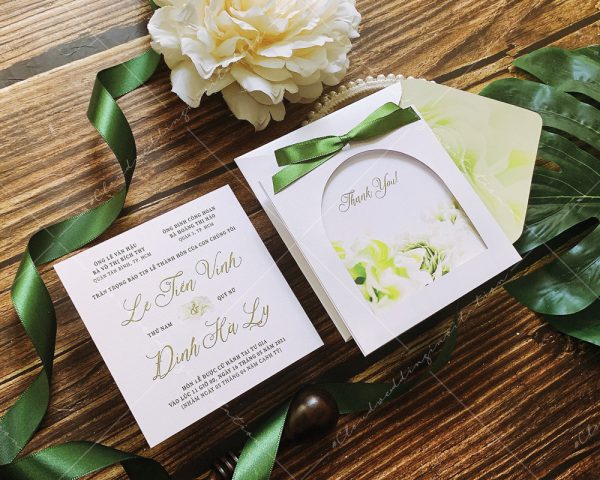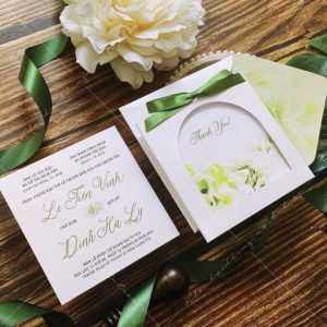 – Thiệp mời: 11.5 x 11.5 cm, quy cách in 2 mặt, chất liệu giấy mỹ thuật cao cấp.