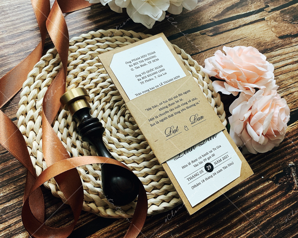 + Tờ lót thiệp: 7.5 x 17 cm (bế theo khuôn như hình), chất liệu giấy Kraft nâu 2 mặt.
