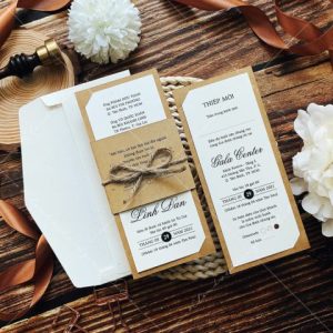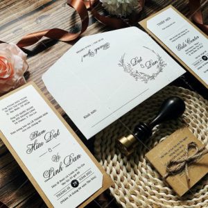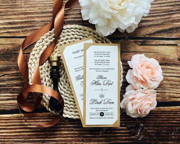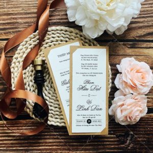 + Tờ thiệp mời: 6.5 x 16 cm, quy cách in 1 mặt, chất liệu giấy mỹ thuật cao cấp.