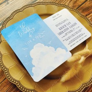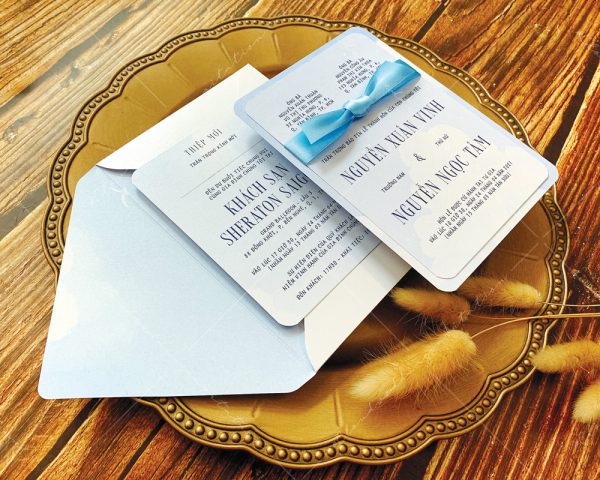 – Thiệp mời tiệc: 10.5 x 13.5 cm, quy cách in 2 mặt, bo tròn 4 góc, chất liệu giấy mỹ thuật cao cấp.