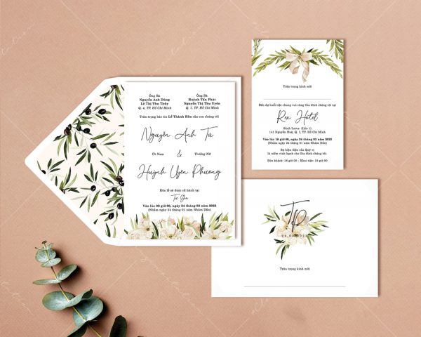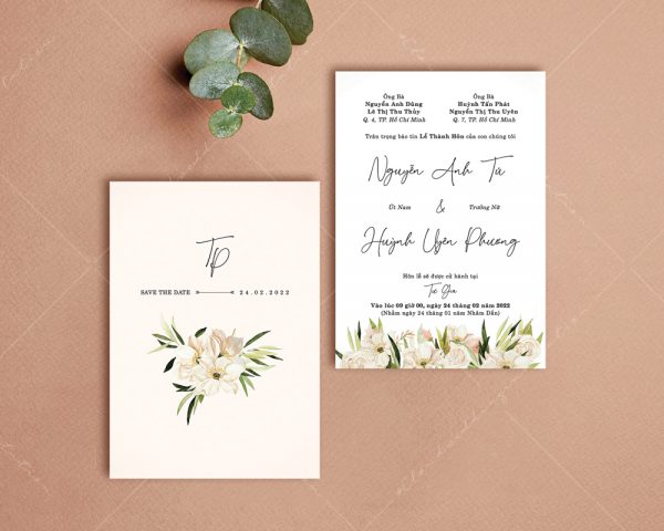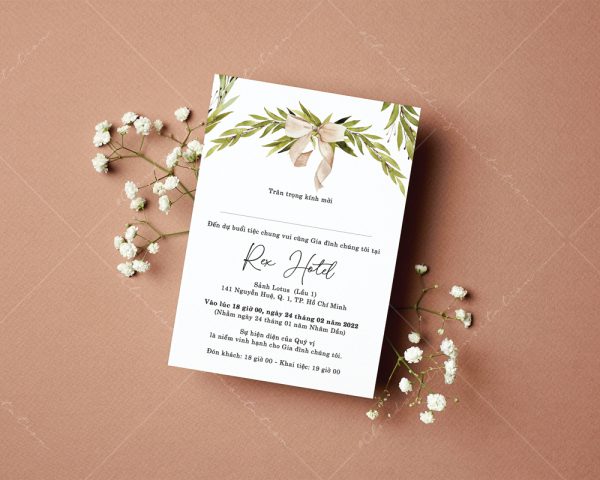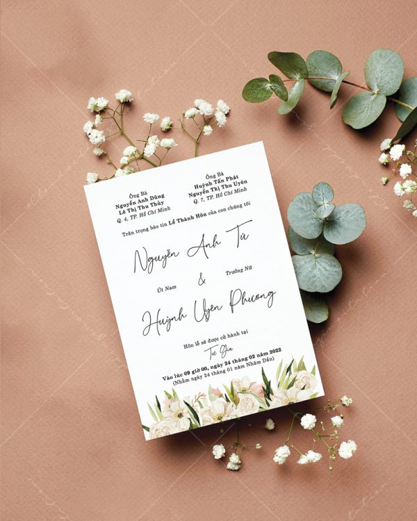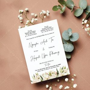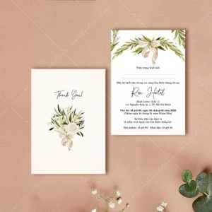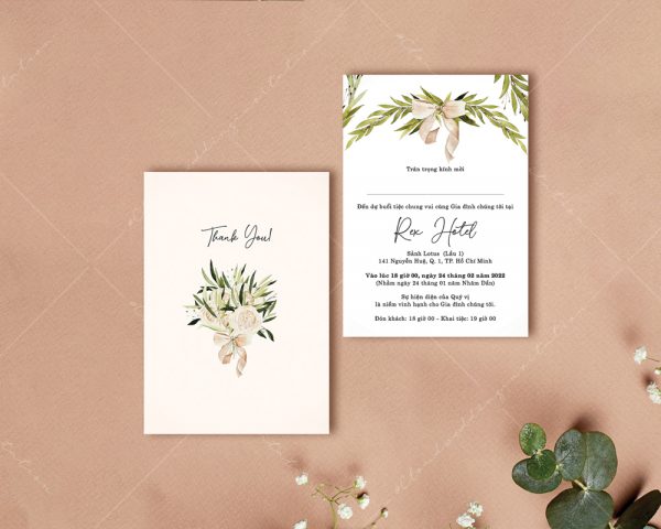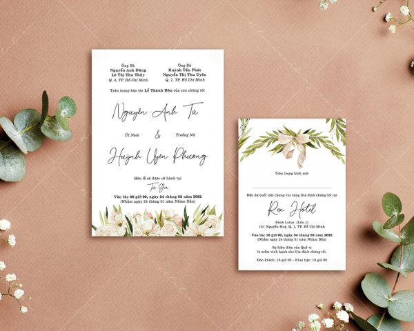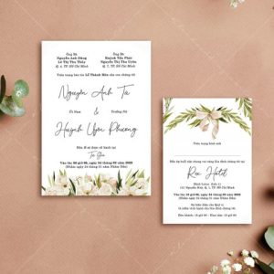 – Thiệp mời tiệc: 11 x 15 cm, quy cách in 2 mặt, chất liệu giấy mỹ thuật cao cấp.