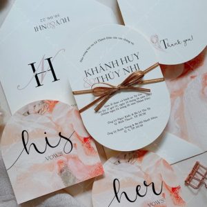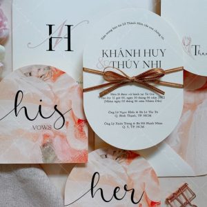 – Thiệp báo hỷ: 12 x 17 cm, quy cách in 2 mặt, bế bo tròn như hình, chất liệu giấy mỹ thuật cao cấp.