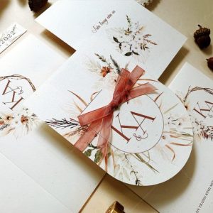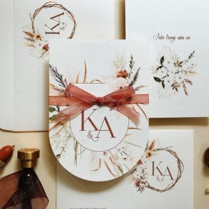 – Thiệp báo hỷ: 12 x 17 cm, quy cách in 2 mặt, bế bo tròn như hình, chất liệu giấy mỹ thuật cao cấp.