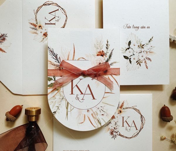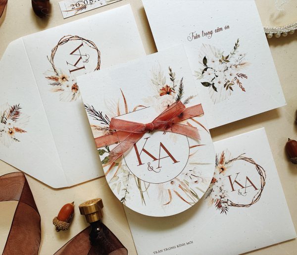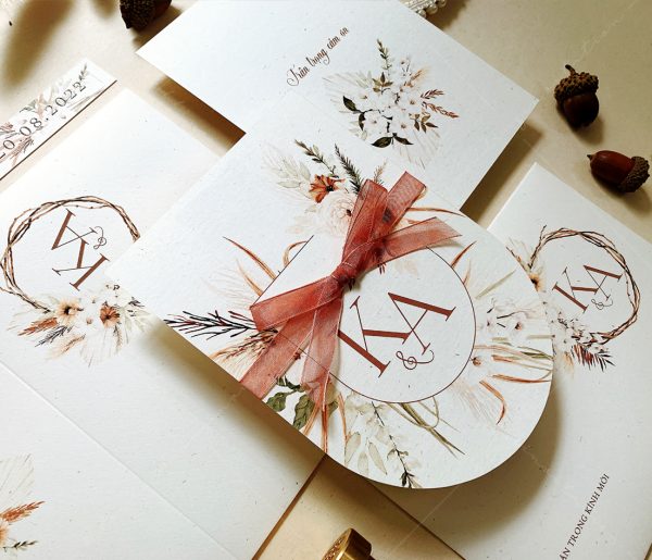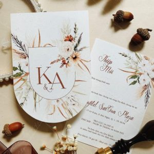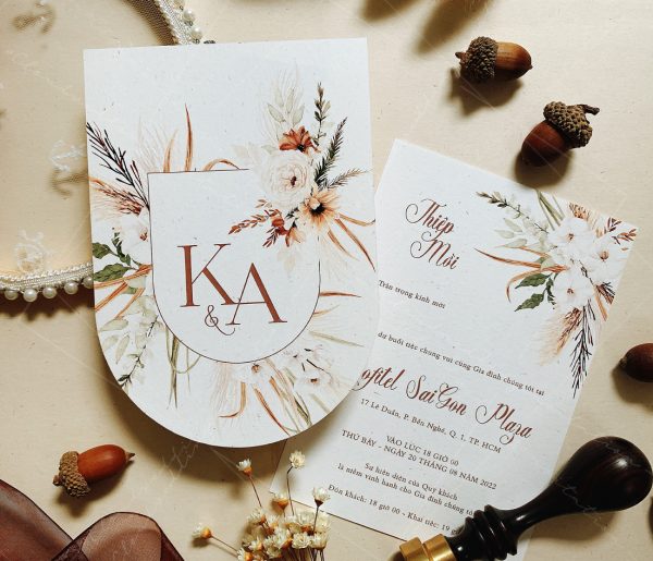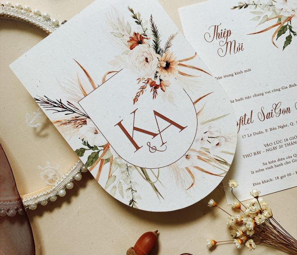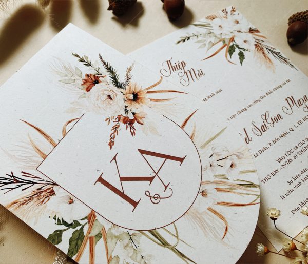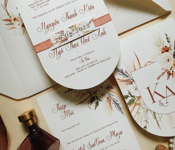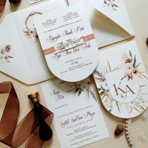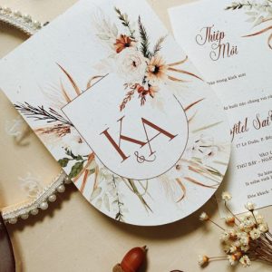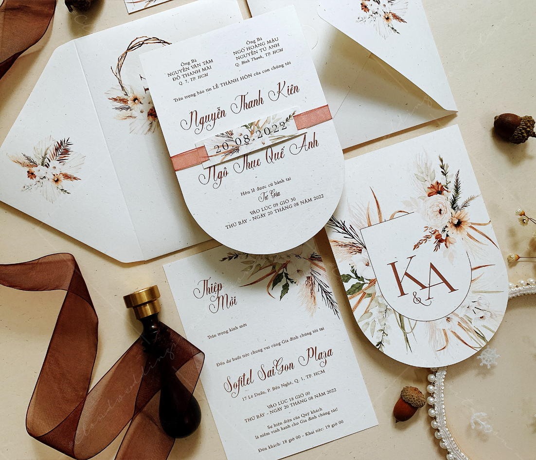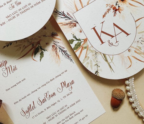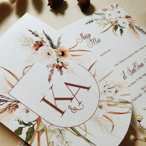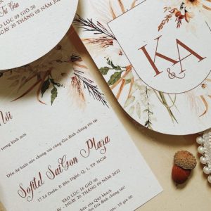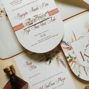 – Thiệp mời tiệc: 12 x 17 cm, quy cách in 2 mặt, chất liệu giấy mỹ thuật cao cấp.