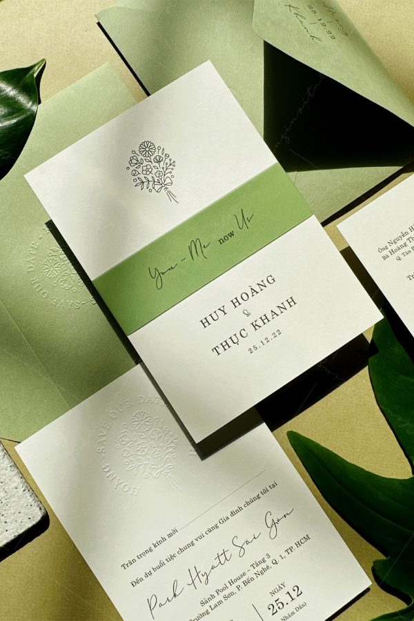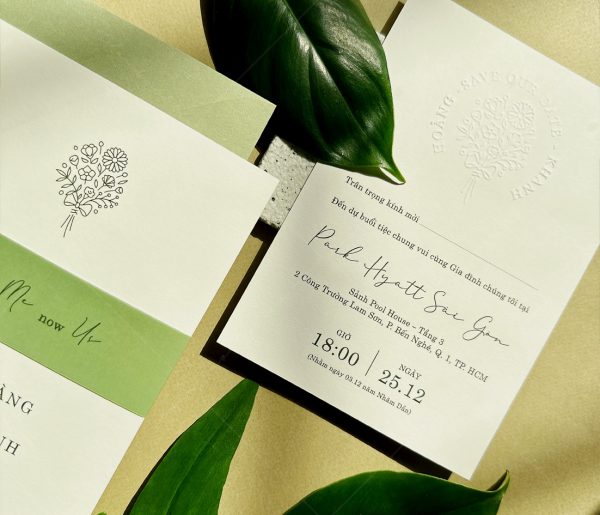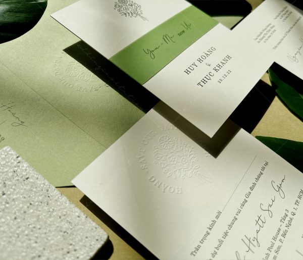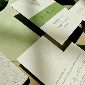 (Giá chưa bao gồm: phí dập nổi của bao thư & tờ thiệp mời)