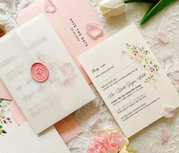 – Bọc thiệp: 12 x 17 cm, quy cách không in, chất liệu giấy can trong.