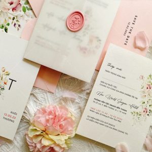 – Thiệp mời tiệc:12 x 17 cm, quy cách in 2 mặt, chất liệu giấy mỹ thuật cao cấp.