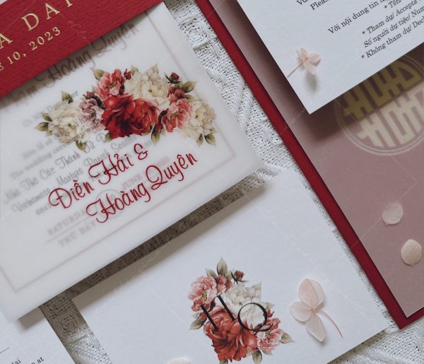 – Thiệp mời: 12 x 17 cm, quy cách in 2 mặt, chất liệu giấy mỹ thuật cao cấp.
