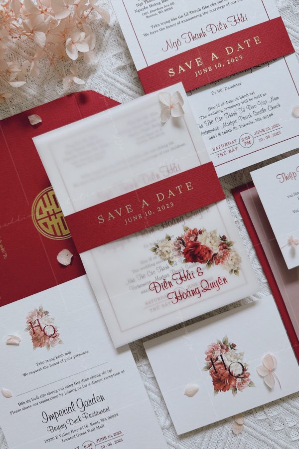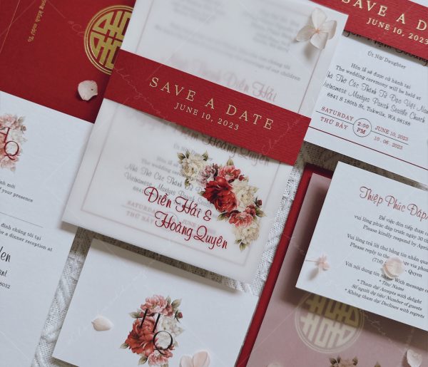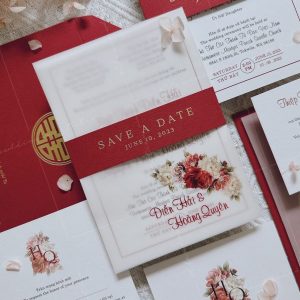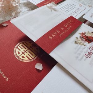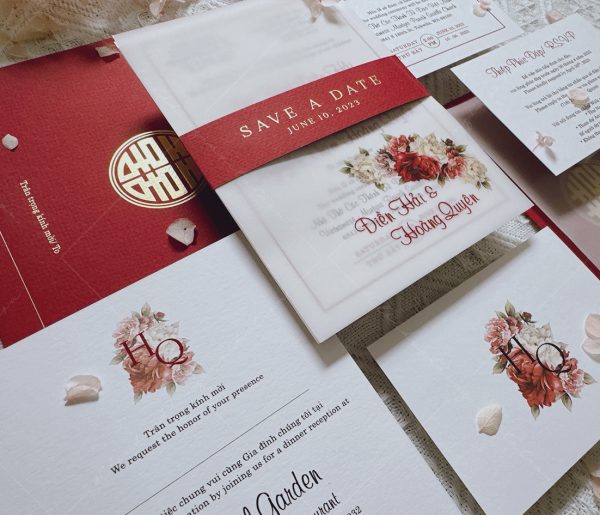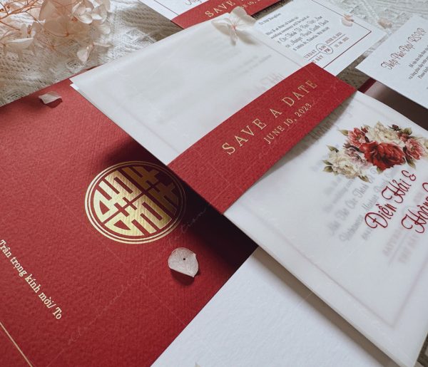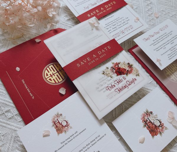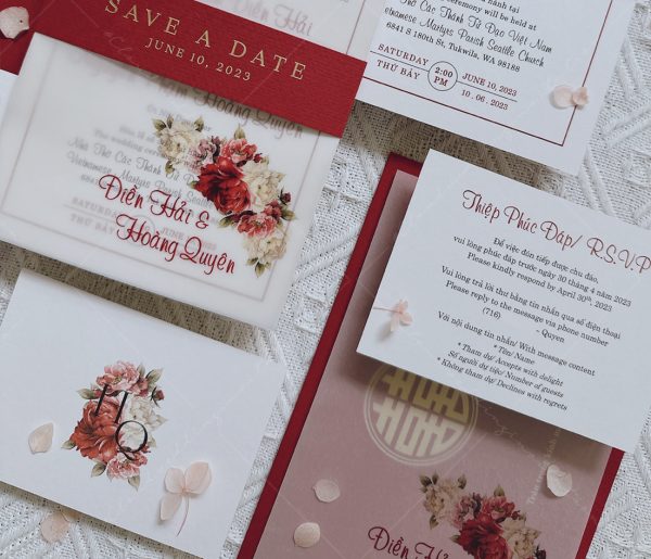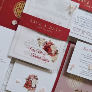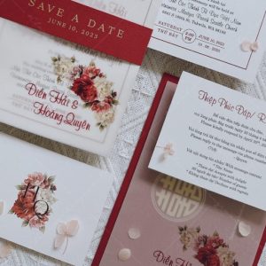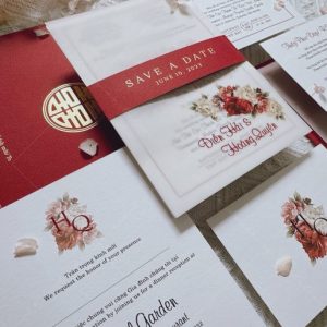 (Giá chưa bao gồm: Tờ RSVP, phí ép kim của bao thư và tag ngang)