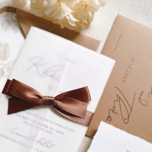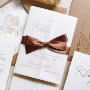 * Dán lót bao thư, quy cách in 1 mặt, xé viền tờ thiệp, giấy mỹ thuật cao cấp