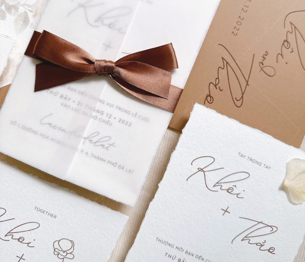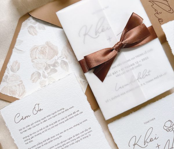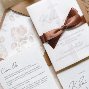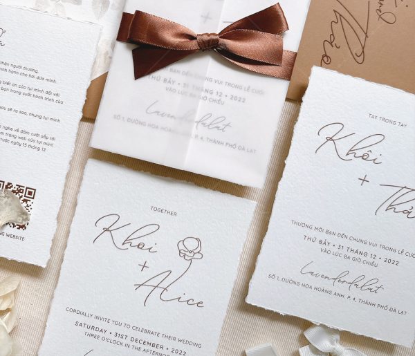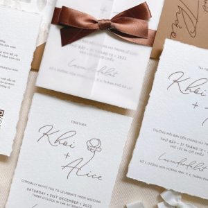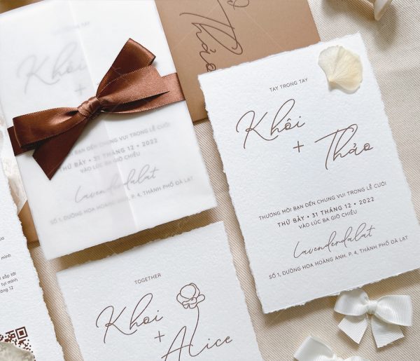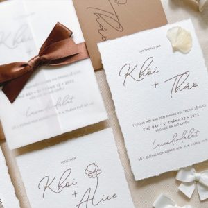 – Thiệp thiệp mời: 12 x 17 cm, quy cách in 2 mặt, xé viền tờ thiệp, chất liệu giấy mỹ thuật cao cấp.