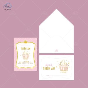 – Thiệp mời tiệc: 12 x 17 cm, quy cách in 1 mặt, chất liệu giấy mỹ thuật tiêu chuẩn.